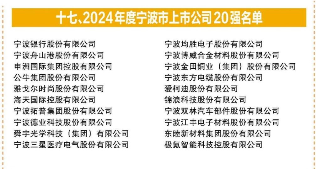 万搏在线(中国)股份荣登“2024宁波上市公司20强”榜单